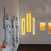 Благодаря сочетанию подлинных артефактов и цифровой проекции посетитель получает возможность увидеть, как монеты и изображения императоров соединяются с живым рассказом о смысле их регалий.